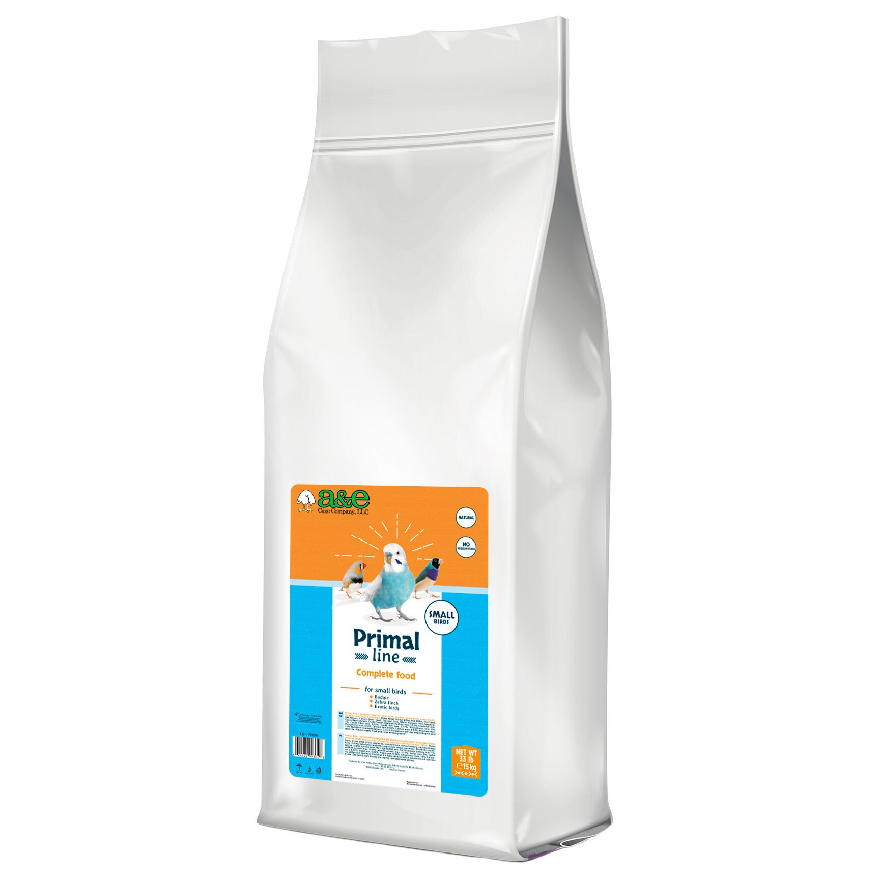 Primal Line Complete Food for Small Birds - 33LB Great Option For Store Use! Introducing Primal Line by A&E Cage Company—your premium bird food solution! Made from all-natural ingredients with no artificial additives, this complete food promotes vibrant health. Each bite supports strong beaks, shiny feathers, and a happier, more active life. Choose Primal Line for bird owners who prioritize quality and care.