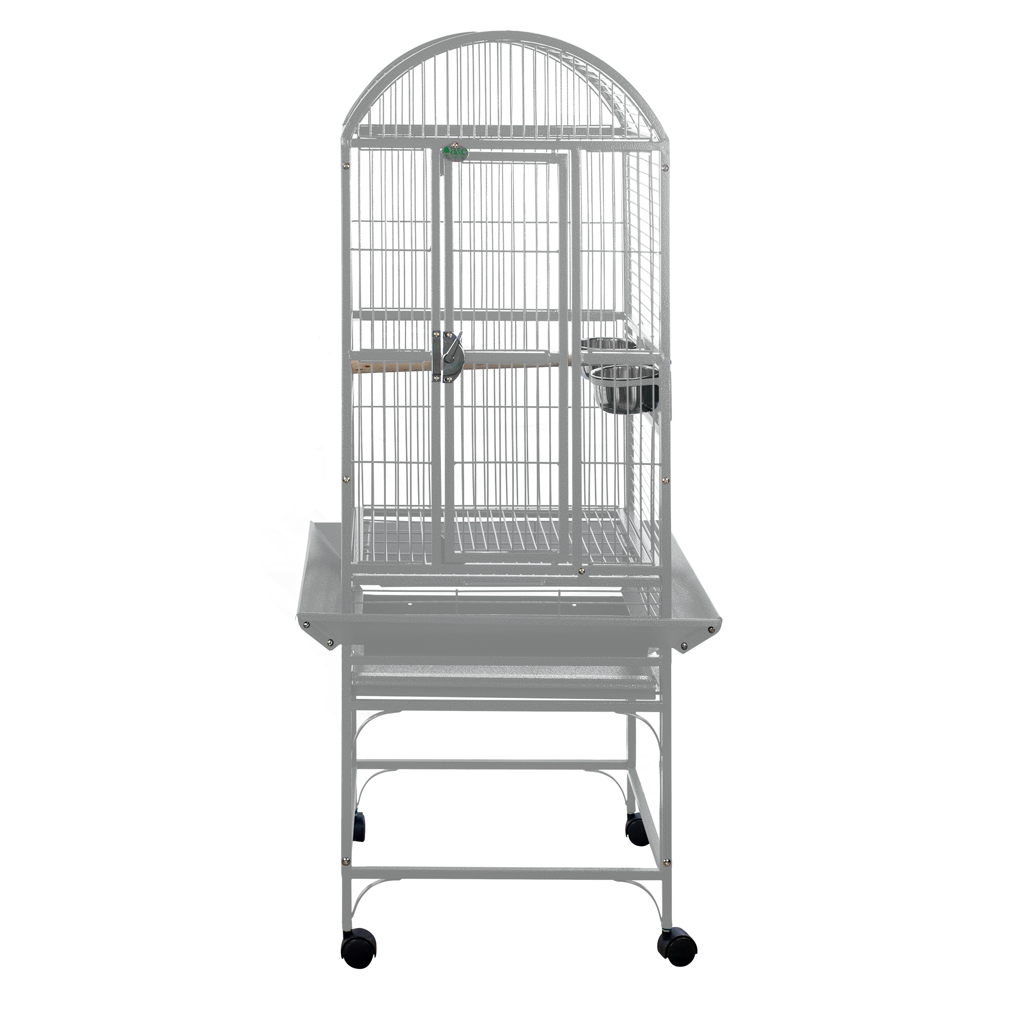 Product Features • Bird proof front door & feeder door locks • Horizontal side bars, vertical bars front & back • 2 swing out feeder doors & additional breeder box door • 2 stainless steel feeder cups & 2 perches • Large front door for easy access • Removable seed catcher • Slide-out grill & tray for easy cleaning • 4 easy rolling casters • Non-toxic, durable and safe powder coated finish