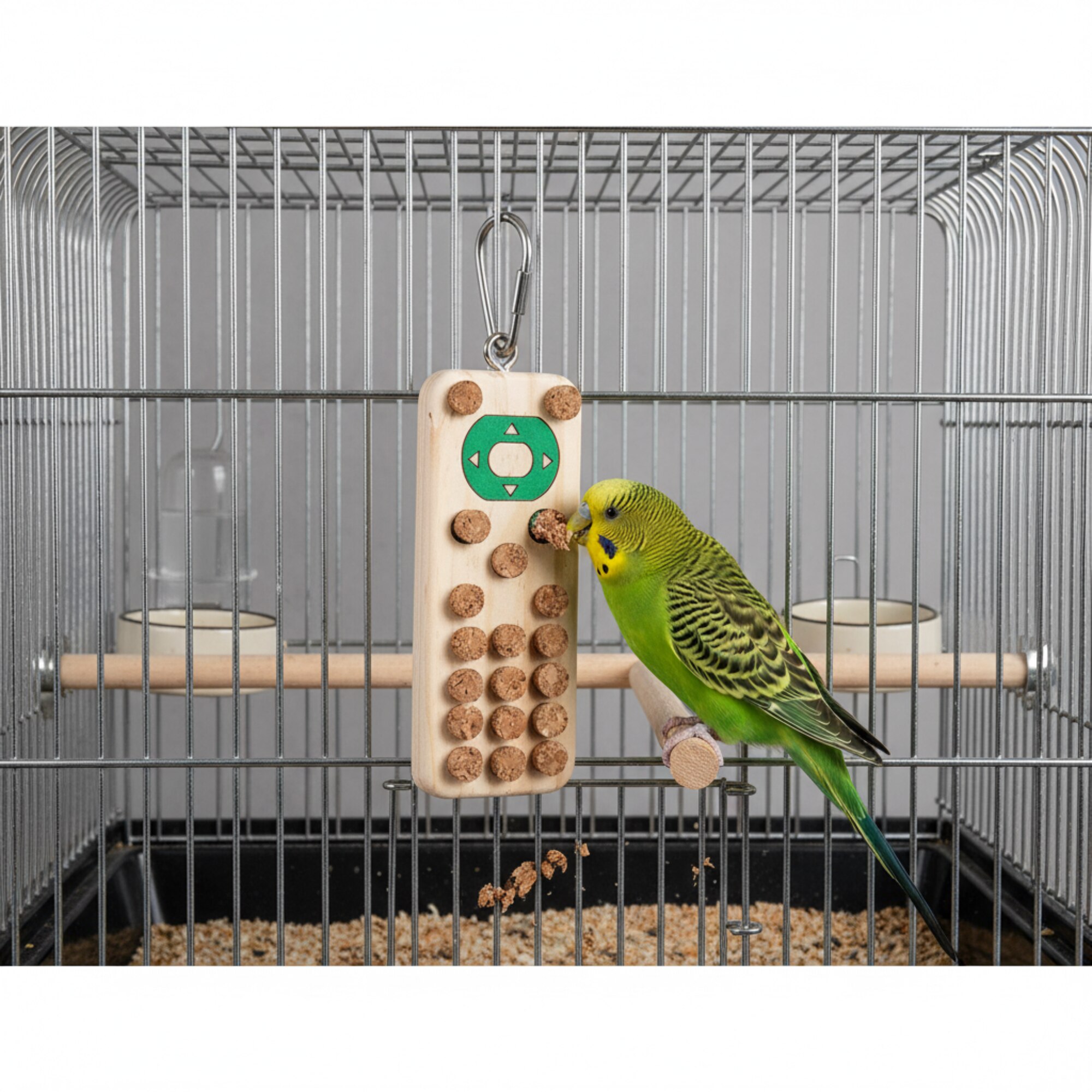 Wood and Cork Remote Corky Crunchers Happy Beaks Bird Toys by A&E Cage Co offer a diverse range of high-quality toys specially crafted to cater to the natural instincts and behaviors of pet birds. These humanized designs are modeled from pizza, cell phone, remote, etc. and offer natural and colorful chewable options, this collection is sure to provide endless fun and mental stimulation for birds of all sizes and species.