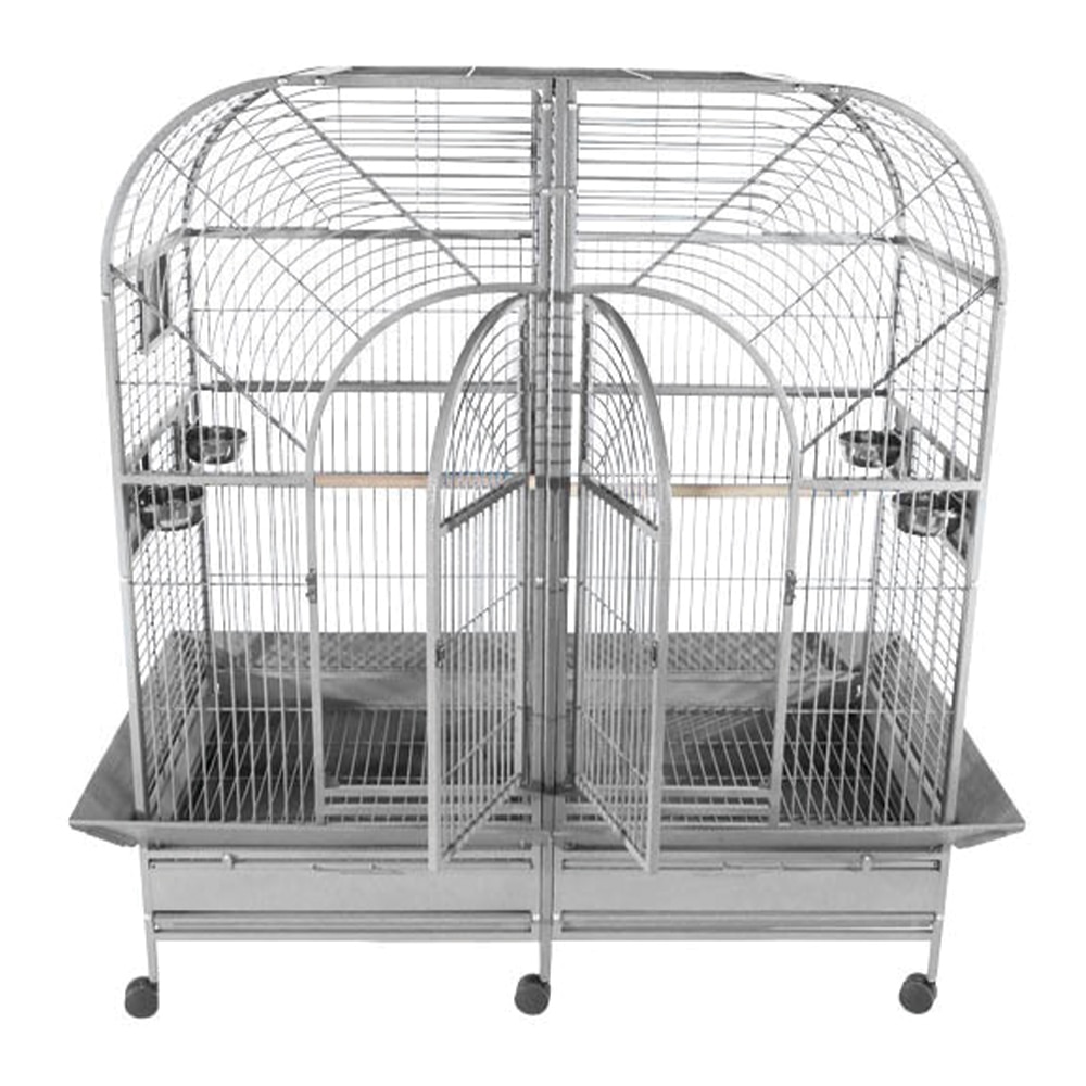 Product Features • Bird proof front door & feeder door locks • Horizontal side bars, vertical bars front & back • Front door safety latch • 4 swing out feeder doors & additional breeder door • 4 stainless steel feeder cups & 2 perches • Removable seed catcher • Removable divider • 2 large front doors for easy access • Slide-out grill & tray for easy cleaning • 4 easy rolling casters • 304 Grade Stainless Steel