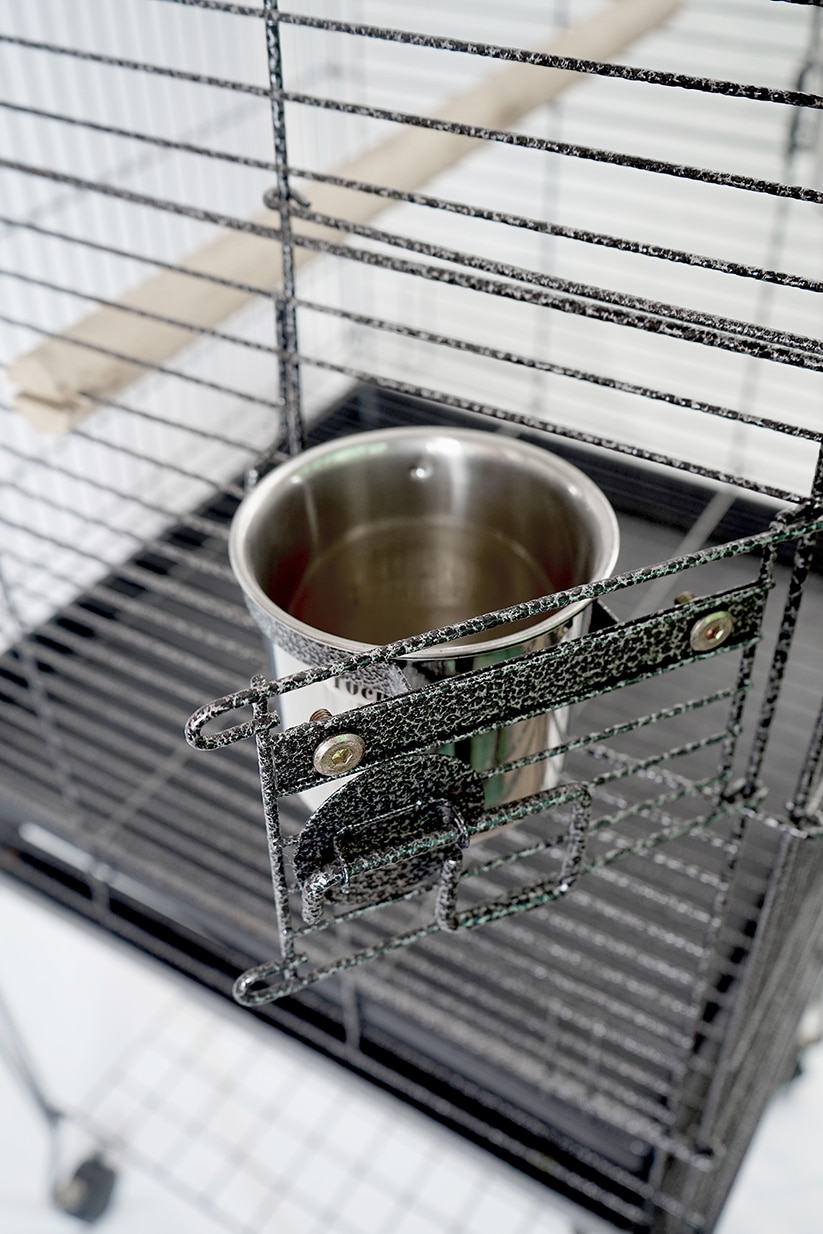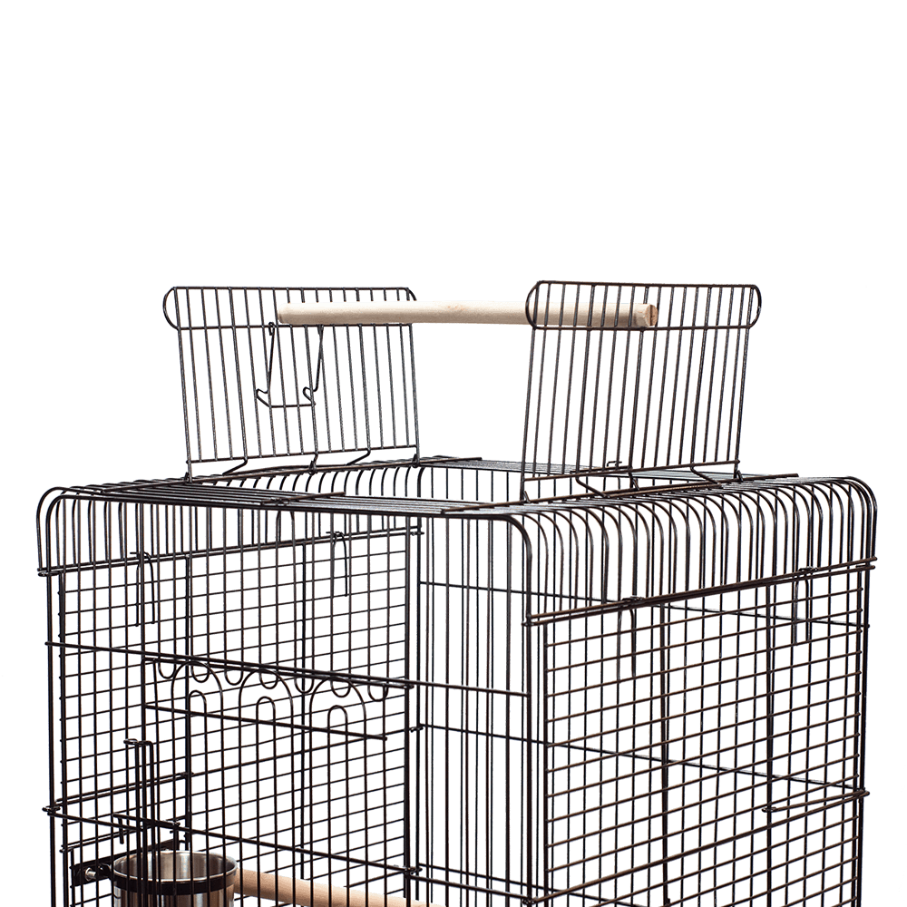 Product Features • Bird cage top opens into play top • Horizontal side bars, vertical bars front & back • Front door safety latch • 2 swing out feeder doors • 2 feeder cups & 2 perches • Large front door for easy access • Slide-out tray and removable grill for easy cleaning • 4 easy rolling casters and storage shelf • Bird cage knocks down for compact storage • Non-toxic, durable, and safe powder coated finish