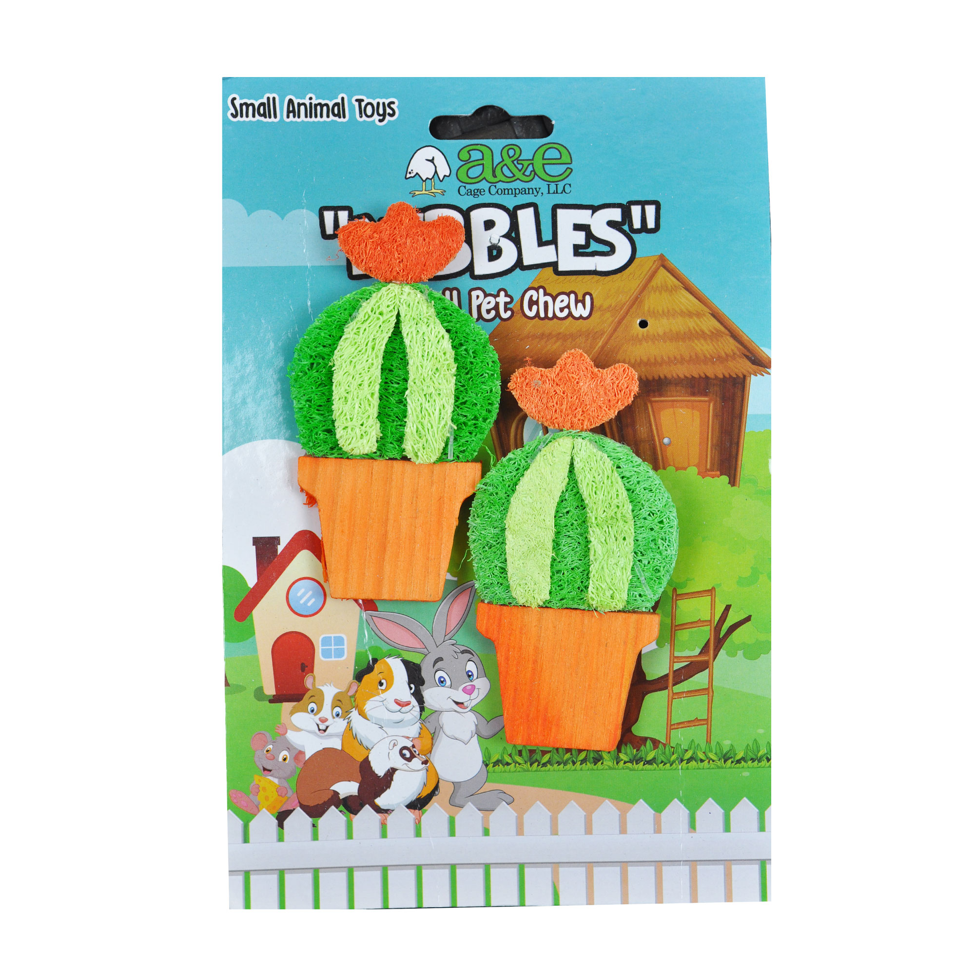 Loofah Barrel Cactus Set interactive fun-shaped chew toys for small animals and rodents. This variety pack is made from pet-safe materials for safe chewing, provides mental stimulation and prevents boredom. A&E Cage Company provides 100% safe, non-toxic, fun toys. All toys go through extensive certified laboratory testing with passing results.