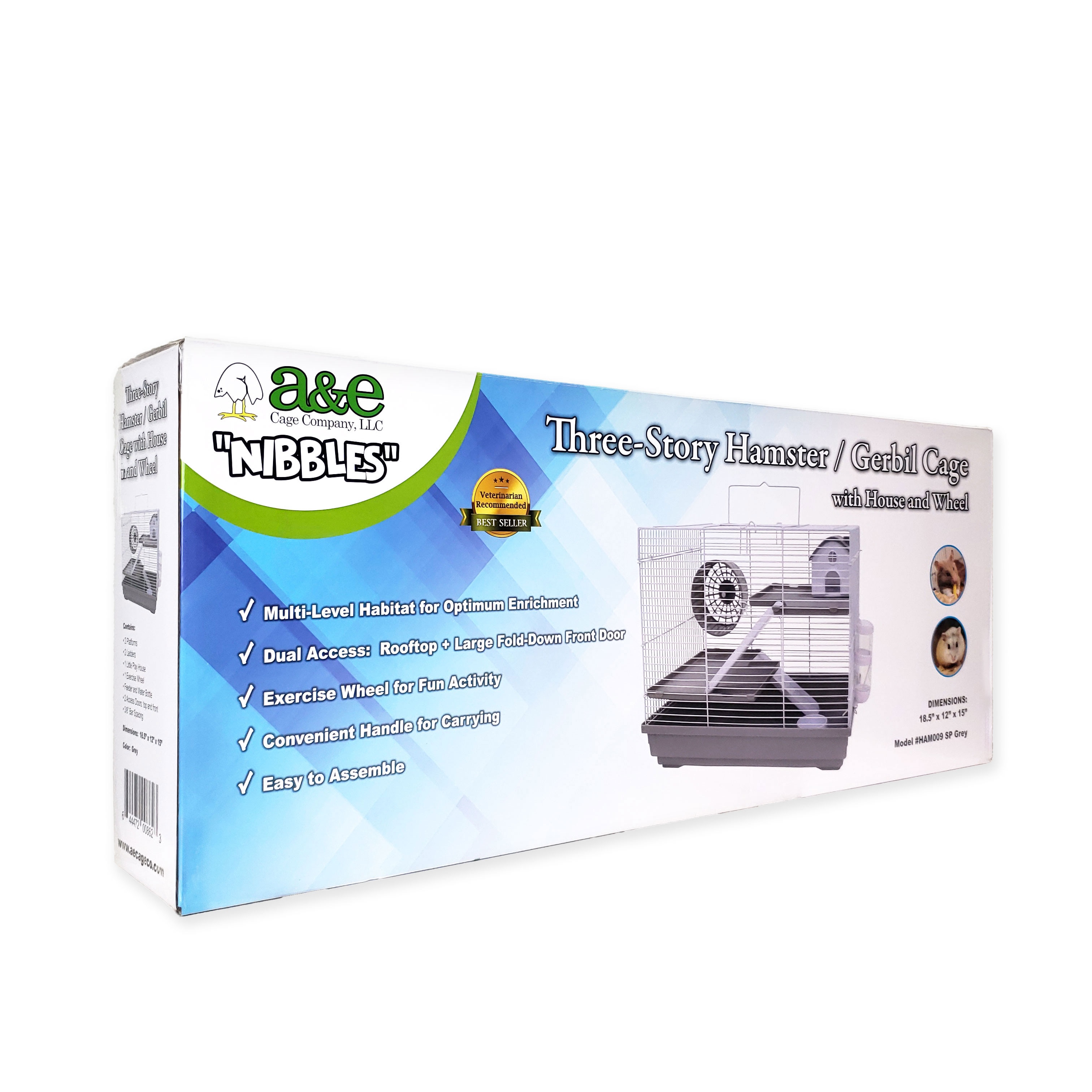 HAM009-SP - 18"x11"x14" - 3 Story Hamster/Gerbil Cage w/ House & Wheel (Retail Box)